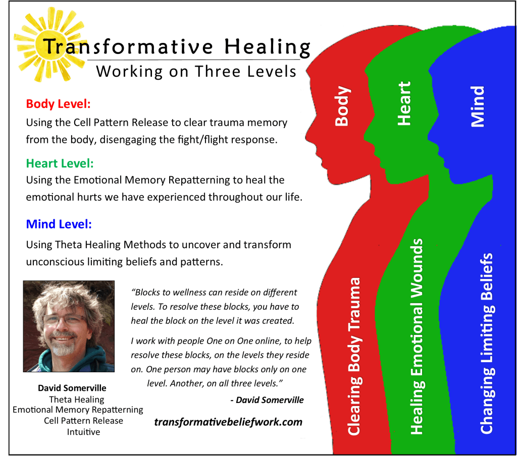 Transforming limiting beliefs, Heart Level emotional wounds, Body Level trauma.